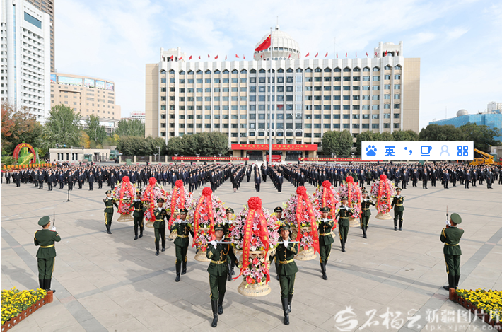 9月30日,烈士纪念日向人民英雄敬献花篮仪式在乌鲁木齐人民广场举行。石榴云/新疆日报记者崔志坚摄