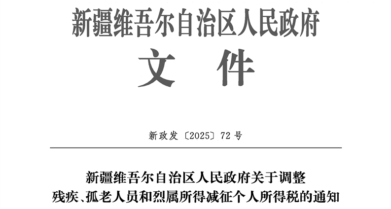 12月26日,自治区人民政府网站发布通知,调整残疾、孤老人员和烈属所得减征个人所得税。