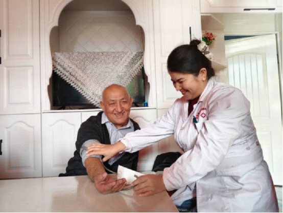 在阿热勒托别镇喀拉布拉克村村委会大厅里,专业理发师耐心为老人修剪头发,助其精神焕发;医护人员为老人测血压、血糖,讲解老年病预防知识,提供诊疗建议。工作人员还设计了“夕阳铲多多”“篮球、保龄球”等小游戏,陪伴老人参与,大厅里笑声不断,老人们还收到了含生活用品与贺卡的暖心小礼物。
