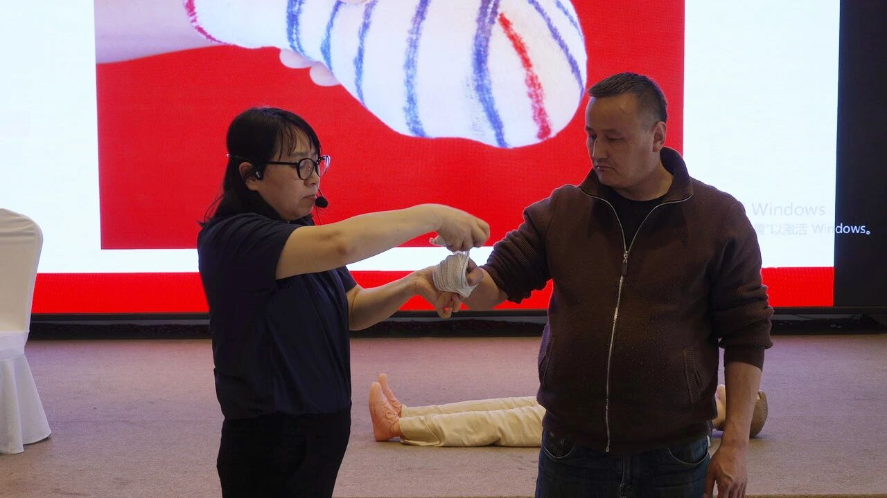 新疆文旅那拉提度假酒店内,培训老师结合景区运营实际,正在开展急救知识专题培训,他们细致讲解着外伤急救的基本方法、操作流程及注意事项,采用“理论讲解+现场实操”的沉浸式教学模式,带领参训学员逐一上手练习、纠正规范,确保每一位学员都能熟练掌握应急处置核心技能,切实提升景区应急保障能力。