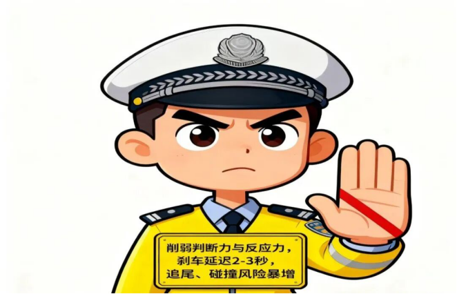1.削弱判断力与反应力,刹车延迟2-3秒,追尾、碰撞风险暴增;