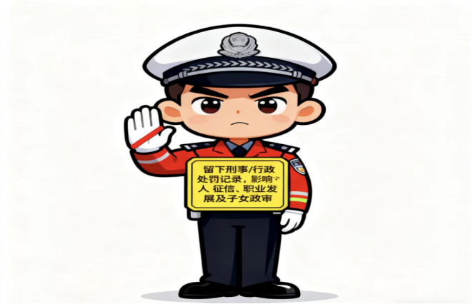 5、留下刑事/行政处罚记录,影响个人征信、职业发展及子女政审。