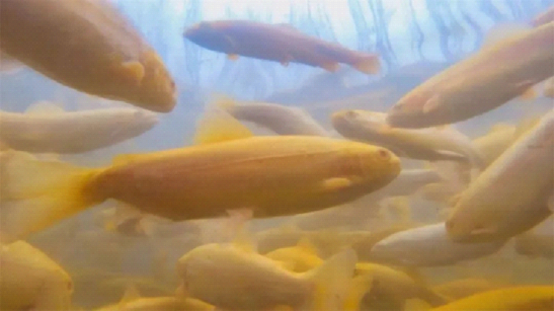 在新疆那拉泉生态养殖基地,放眼望去,一排排鱼池错落有致,工人们正忙着赶鱼、捞鱼、称重、装车,整个生态养殖基地一派鱼跃人欢的丰收喜人景象……鲜活的冷水鱼被成功打捞后将通过速冻加空运的方式运往外地,以保障内地消费者第一时间吃到新鲜的新疆那拉泉冷水鱼。