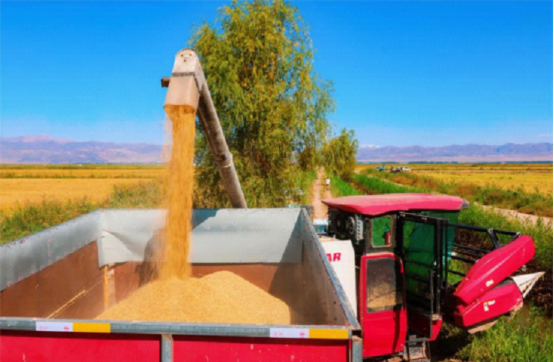 新源县科技特派员胡长文介绍说:“今年种植的水稻品种‘龙祥6号’表现突出,亩产可达550公斤至600公斤。为进一步优化品种结构,今年大力推广长粒水稻,并通过农业公司与村民签订收购订单,以每公斤3.2元的价格保障种植户收益,实现品种升级与农户增收的双向推进。”