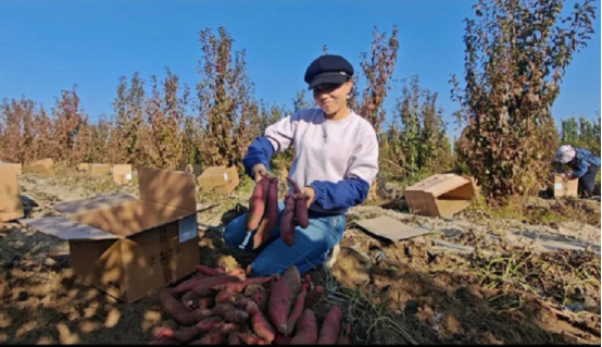 “我们是本村人,在这儿干活特别方便!”村民撒德花一边分拣红薯一边笑着说,“收红薯一天能挣150元,我已经在这干了五六天了,既能照顾到家里的孩子,还能多挣钱,心里踏实!”