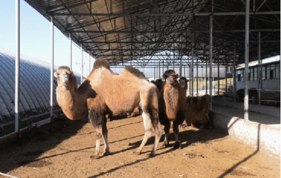 走进伊犁恩塔沛伊乐生态养殖有限公司养殖基地,两座崭新的标准化棚圈已全面建成,棚内设施完备、布局规整,静待骆驼入驻。现有养殖区域内,骆驼或悠闲进食、或踱步休憩,一派蓬勃景象。