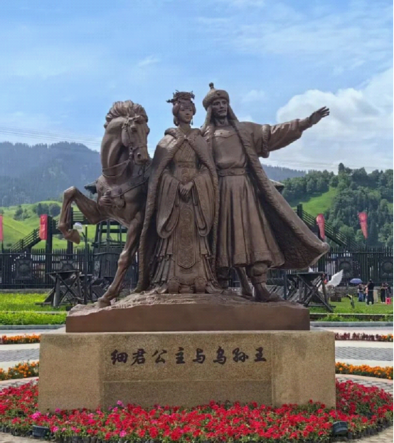投入500万元的细君公主广场在那拉提景区建成开放(7月5日摄)。□图片由扬州工作组提供