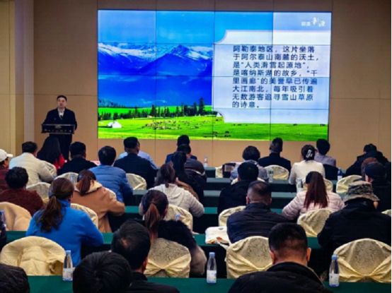 为推动新源那拉提冰雪旅游发展。近日,新源县文旅及酒店用品推介会在阿勒泰地区布尔津县成功举办。活动以“文旅融合、产业协作、区域共赢”为主题,通过文旅专题推介、酒店用品实物展示,全方位展现新源县冬季自然文化魅力与产业实力。新源县委副书记、扬州市对口支援新源县前方工作组组长唐朝文,阿勒泰地区文化体育广播电视和旅游局党组成员、副局长王新慧和新疆扬州商会代表,阿勒泰地区及其布尔津县60余名酒店、民宿行业人士参加推介会。