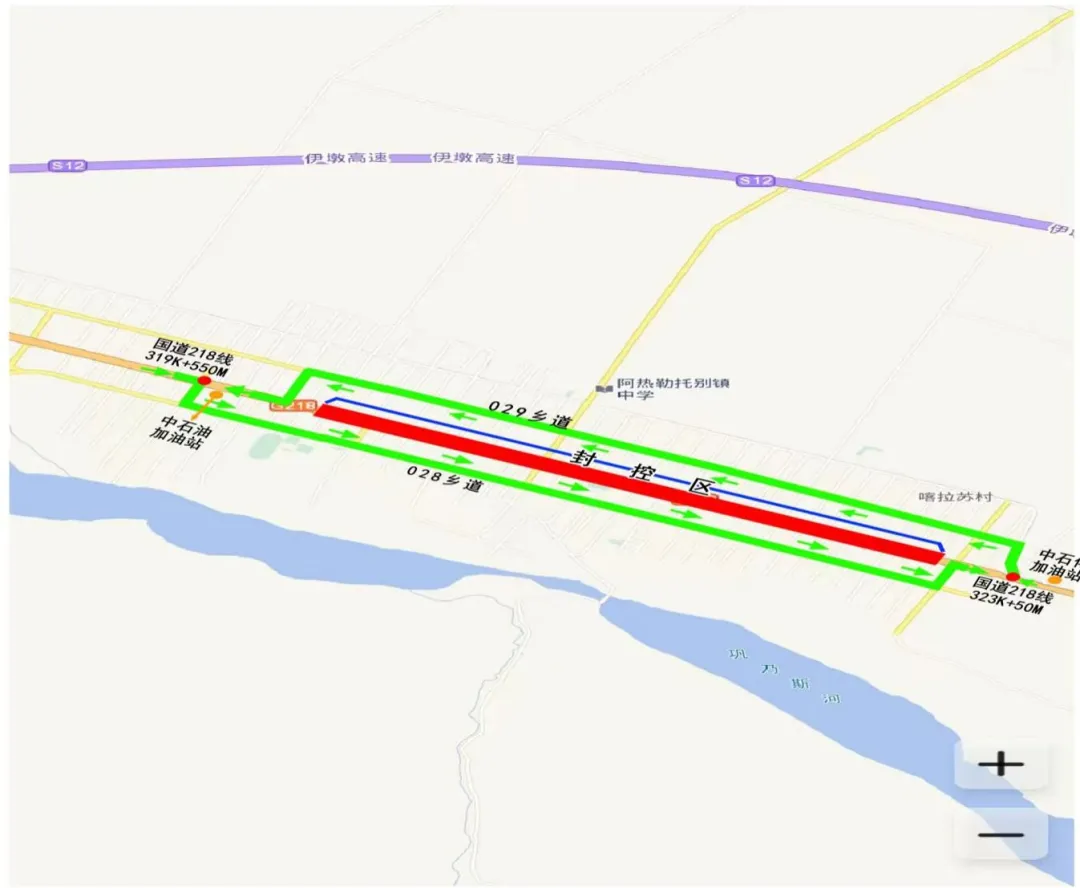 3.阿热勒托别镇社火展演分会场管控路段:国道218线319K+550M至323K+50M路段