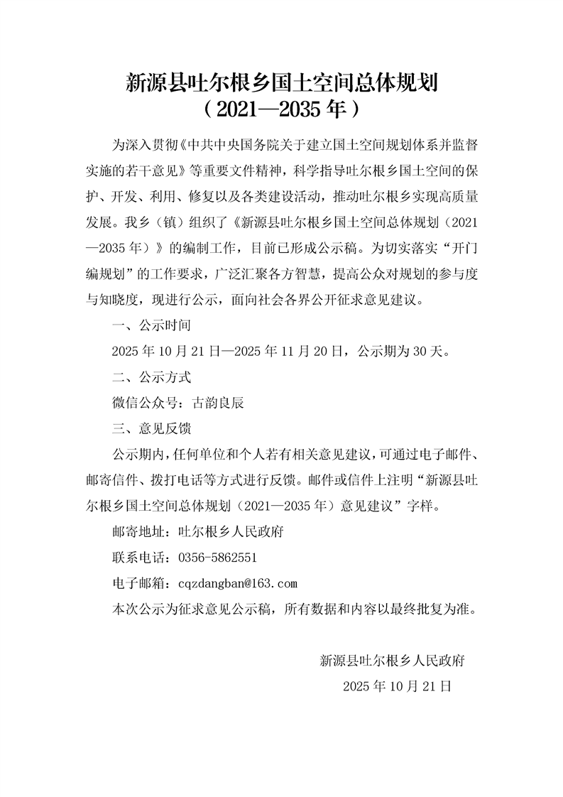 新源县吐尔根乡国土空间总体规划 (2021—2035年)