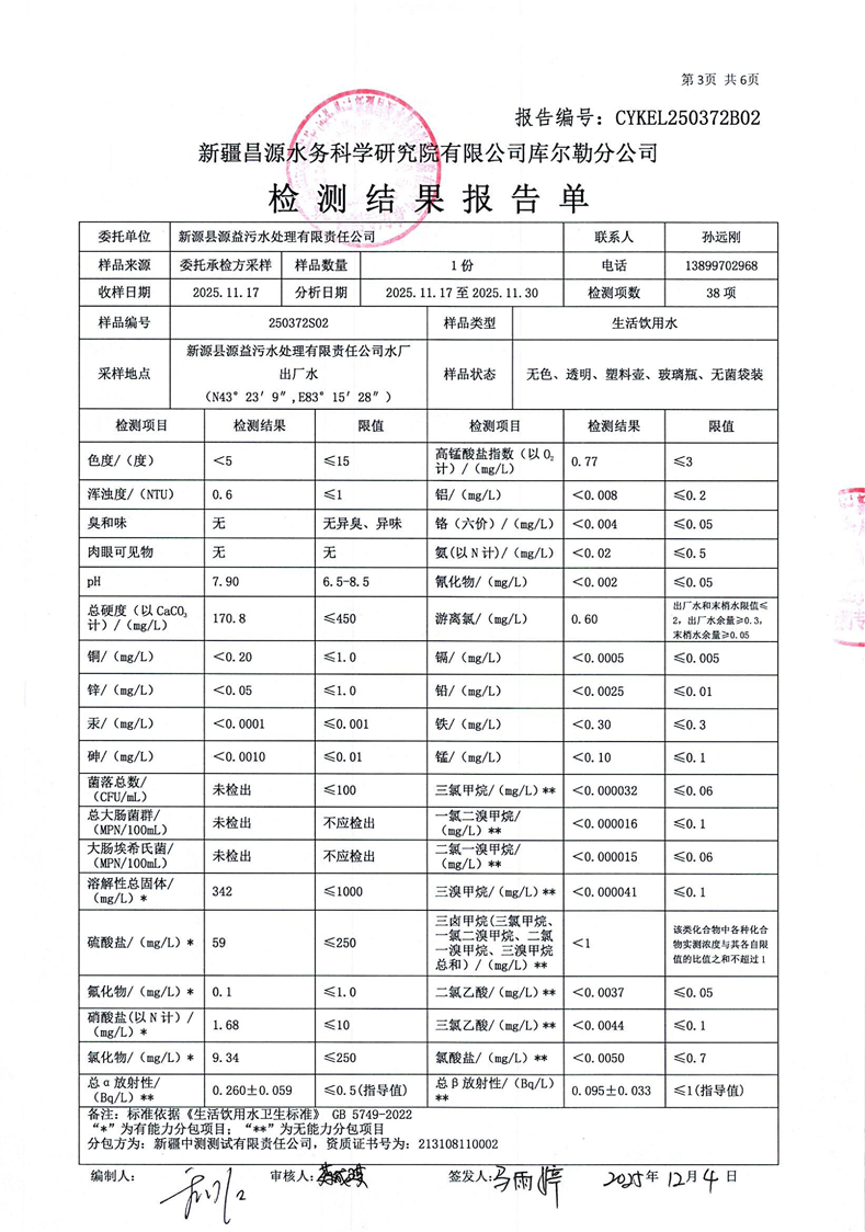 2025年11月水质检测报告