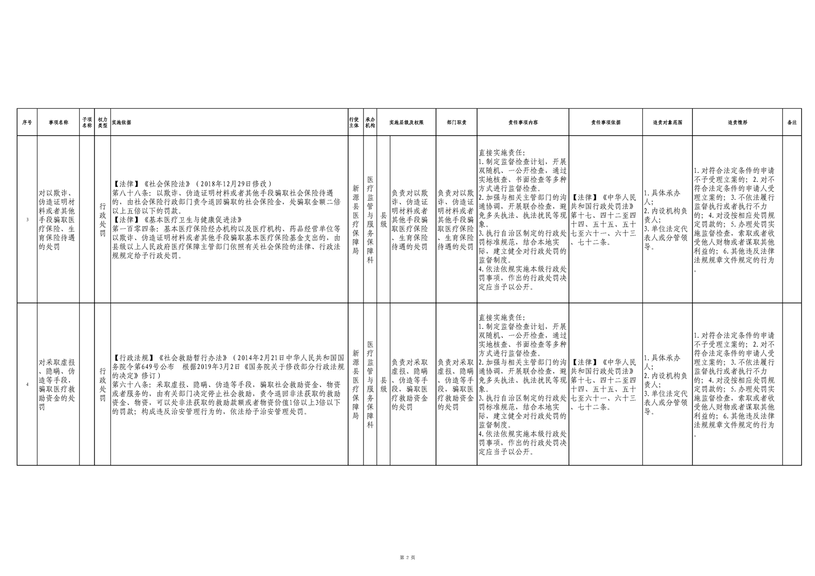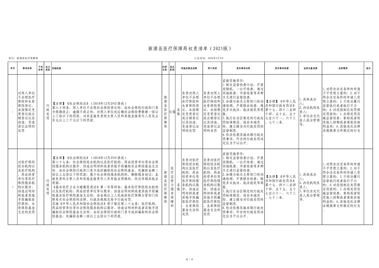 新源县医疗保障局权责清单(2025版)