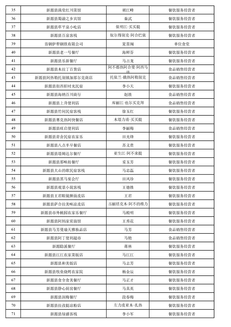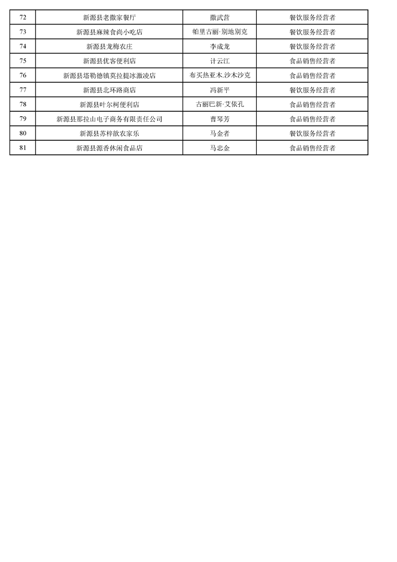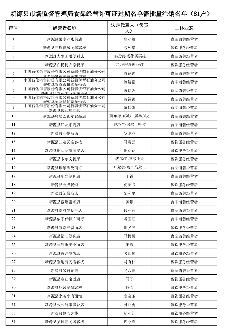 新源县市场监督管理局食品经营许可证过期名单需批量注销名单(81户)