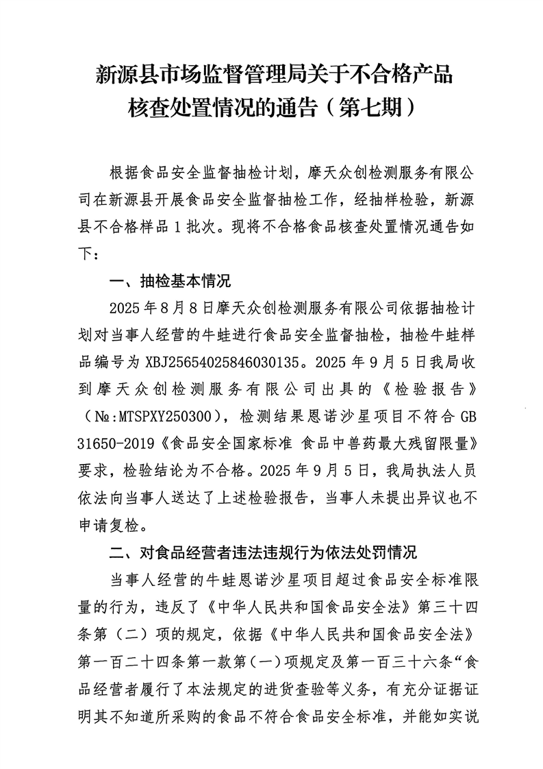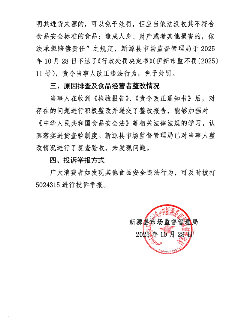 新源县市场监督管理局关于不合格产品核查处置情况的通告(第七期)
