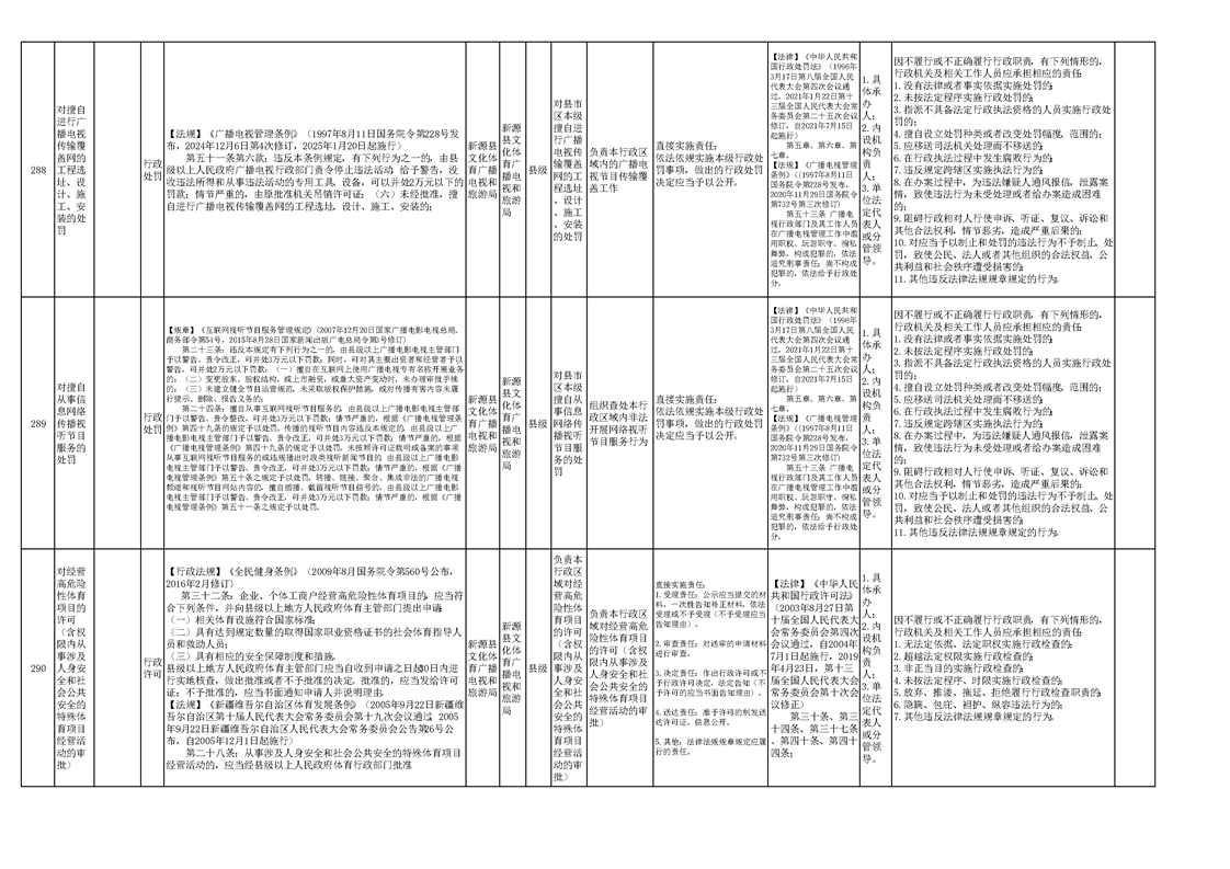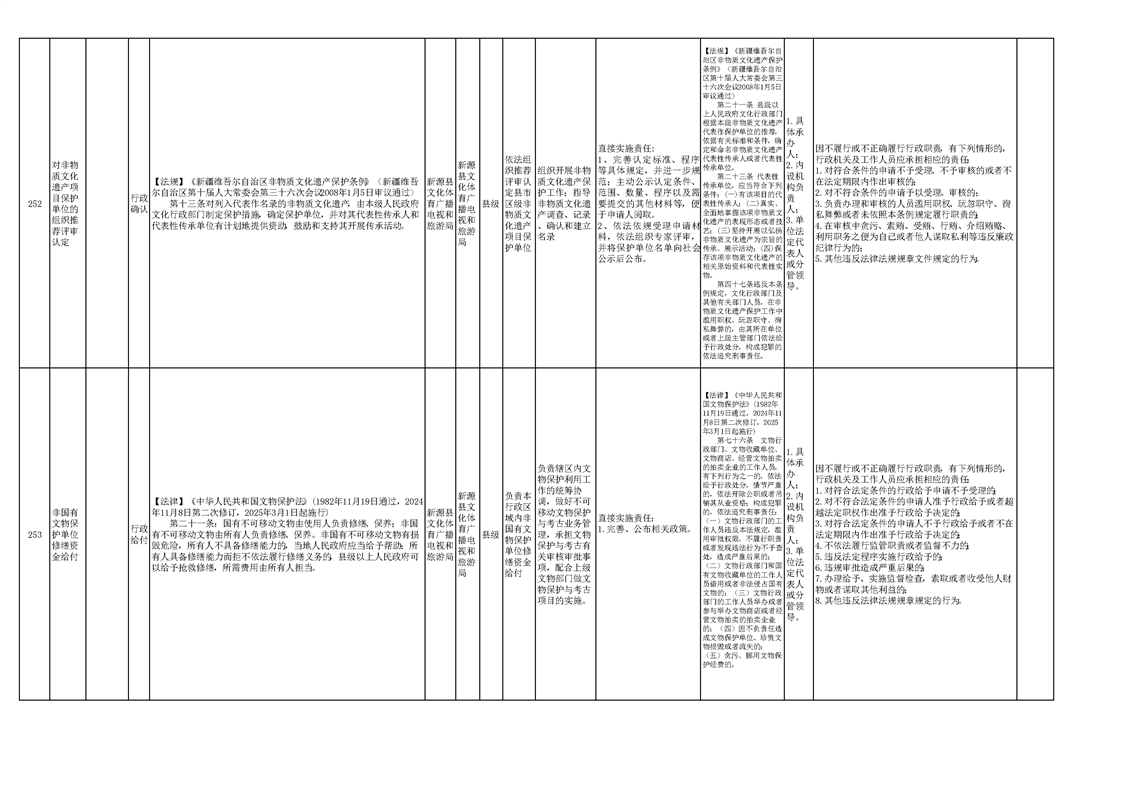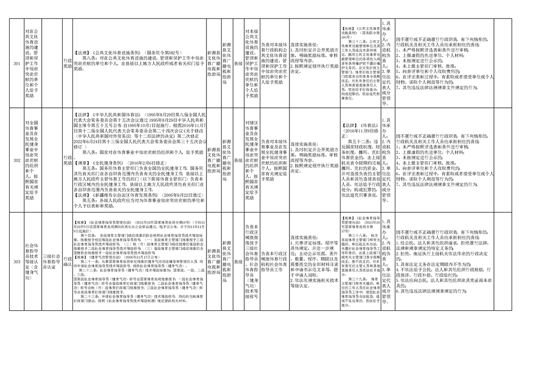 新源县文化体育广播电视和旅游局权责清单(2025版)