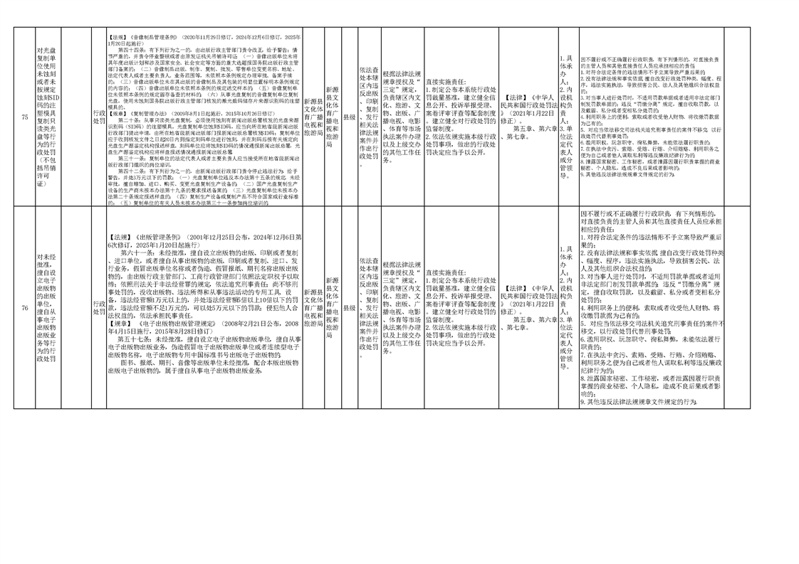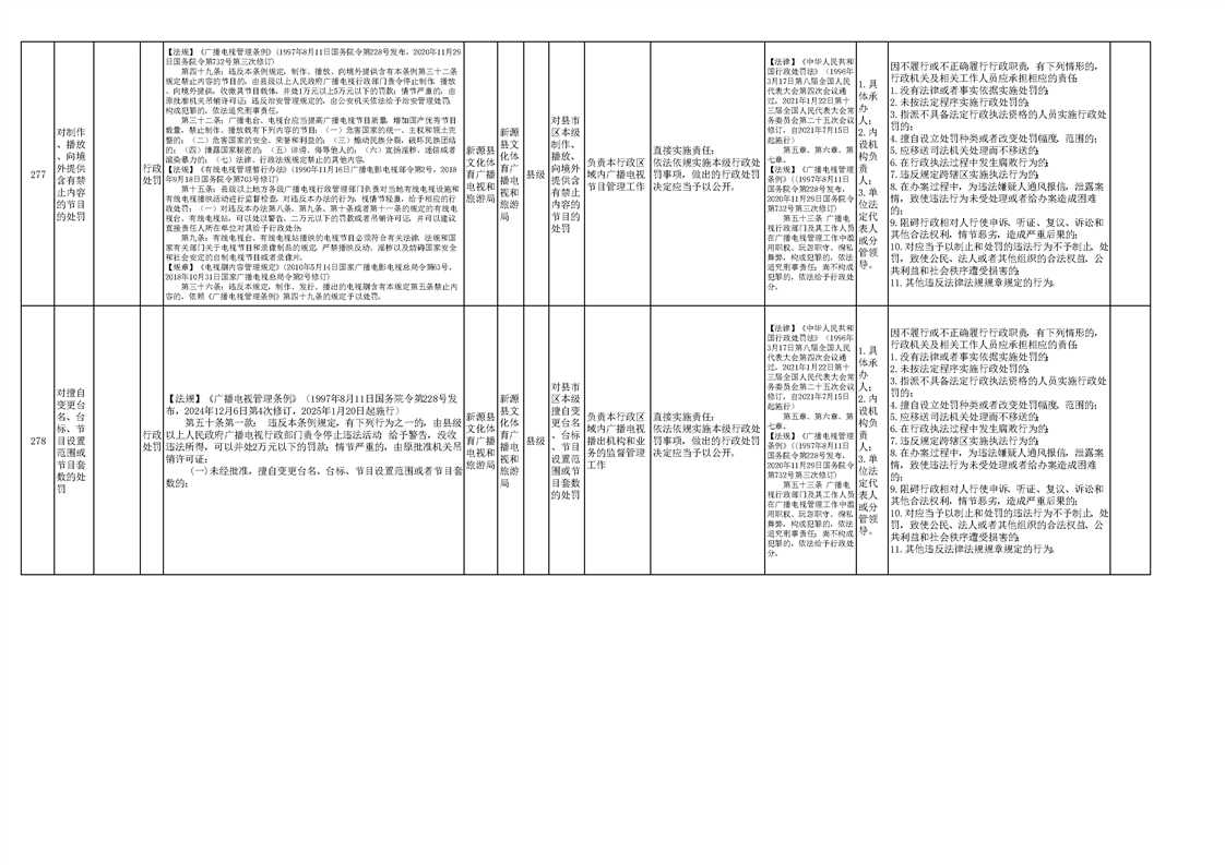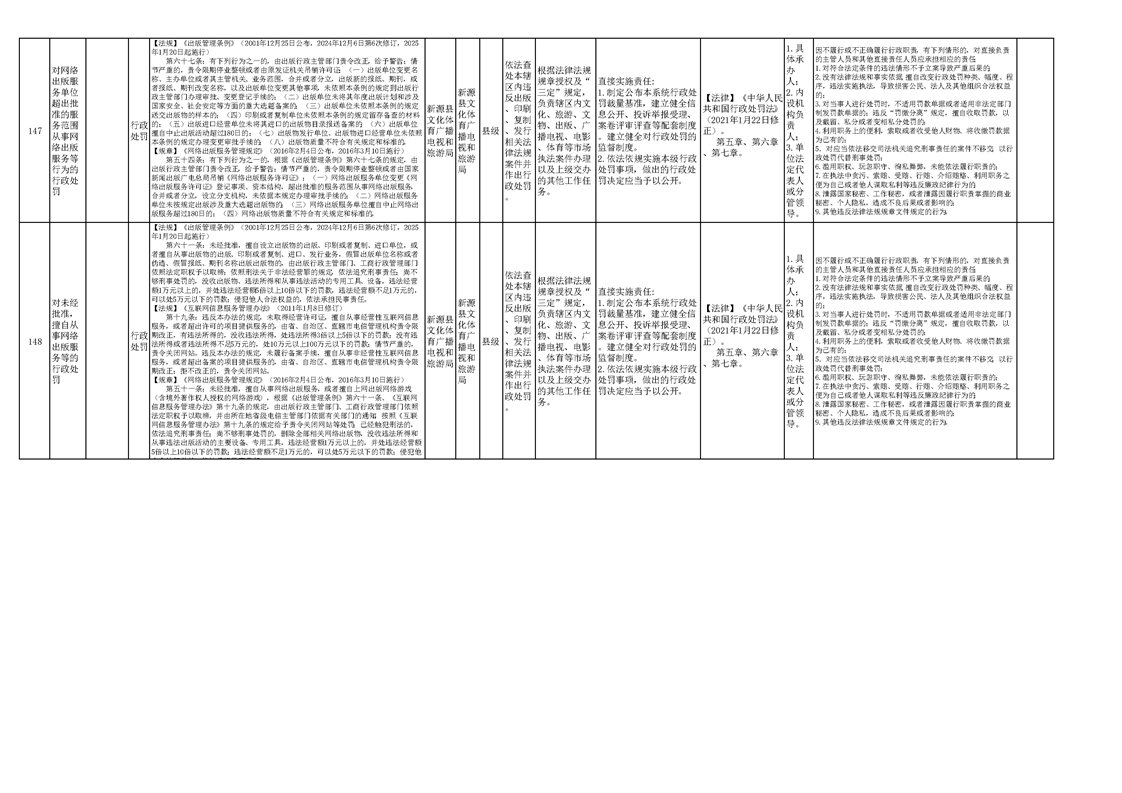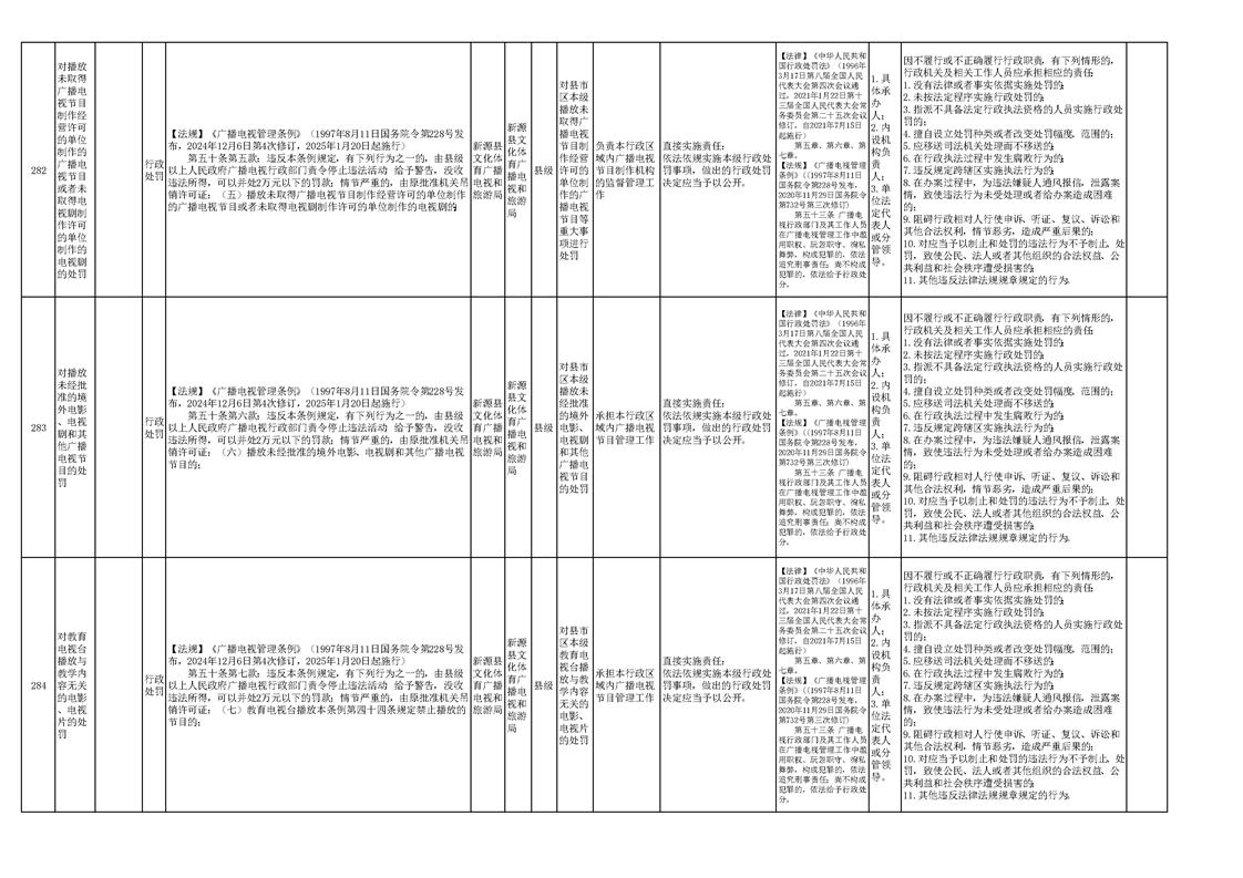 新源县文化体育广播电视和旅游局权责清单(2025版)