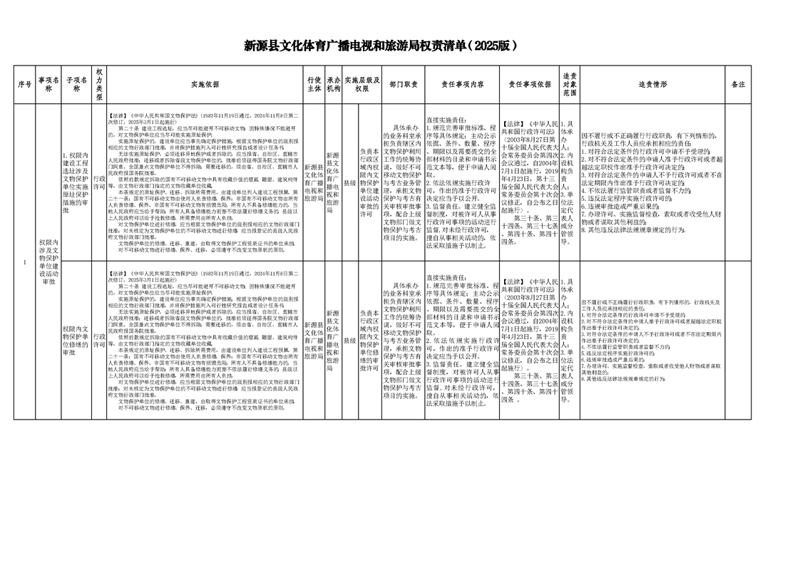 新源县文化体育广播电视和旅游局权责清单(2025版)