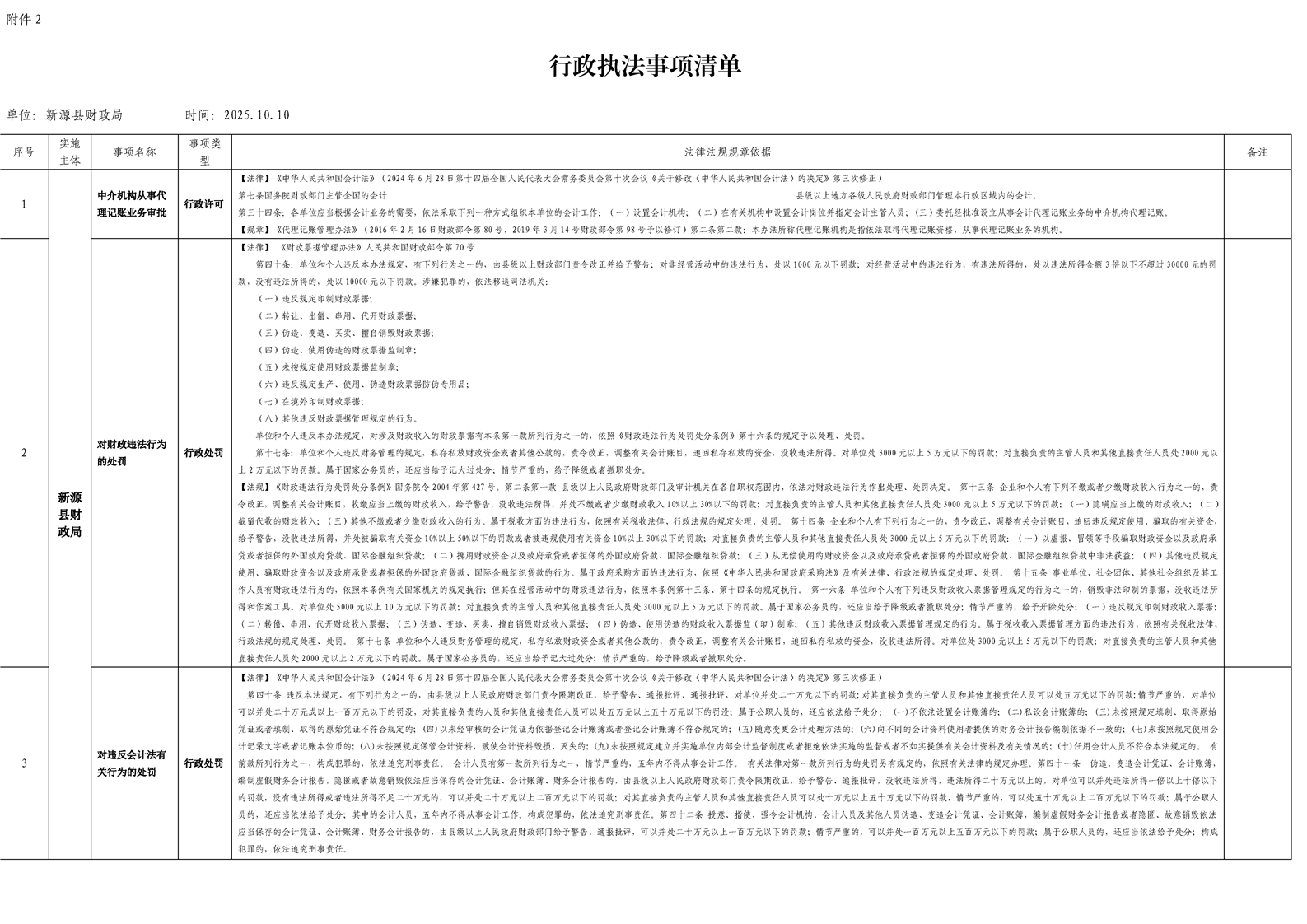 新源县财政局行政执法事项清单