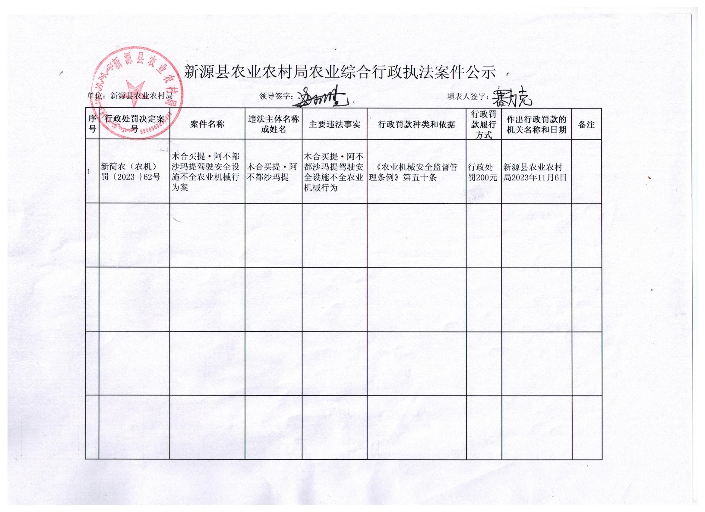 新源县农业农村局农业综合行政执法案件(农机案件11.30)