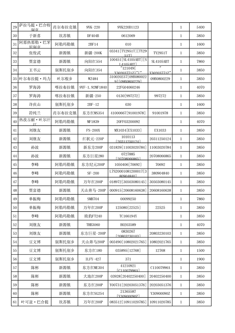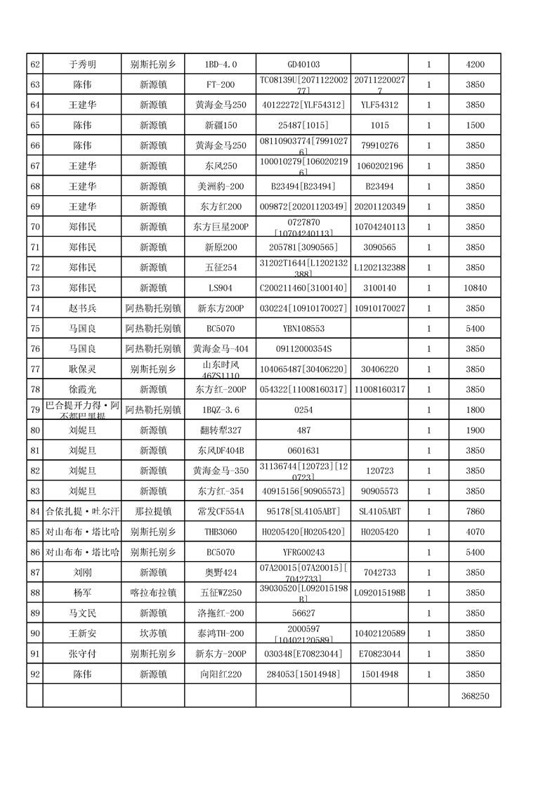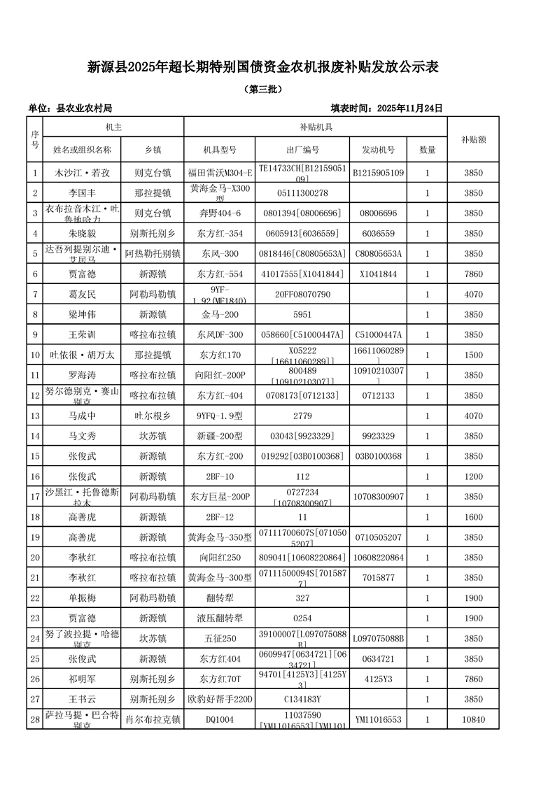 新源县2025年超长期特别国债资金农机报废补贴发放公示(第三批)