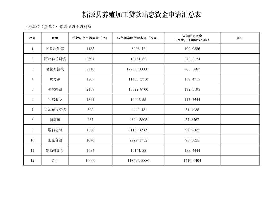 新源县各乡镇2024-2025年度第一批养殖加工贷款贴息补贴资金公示