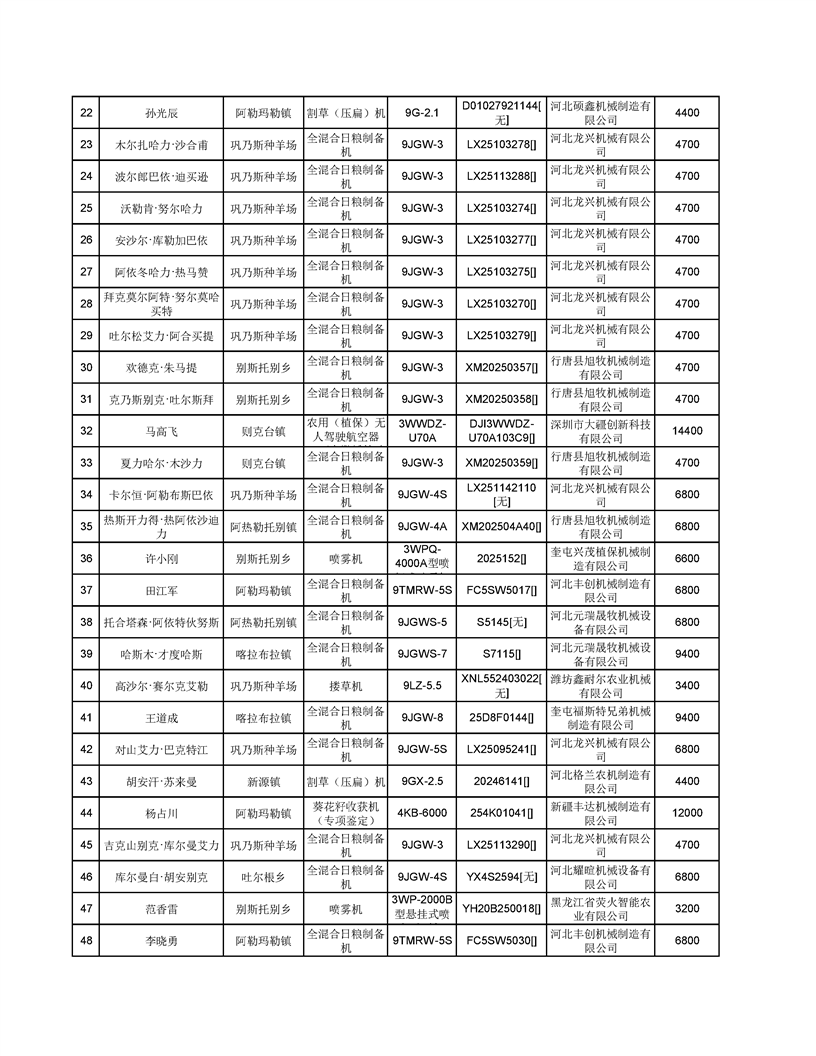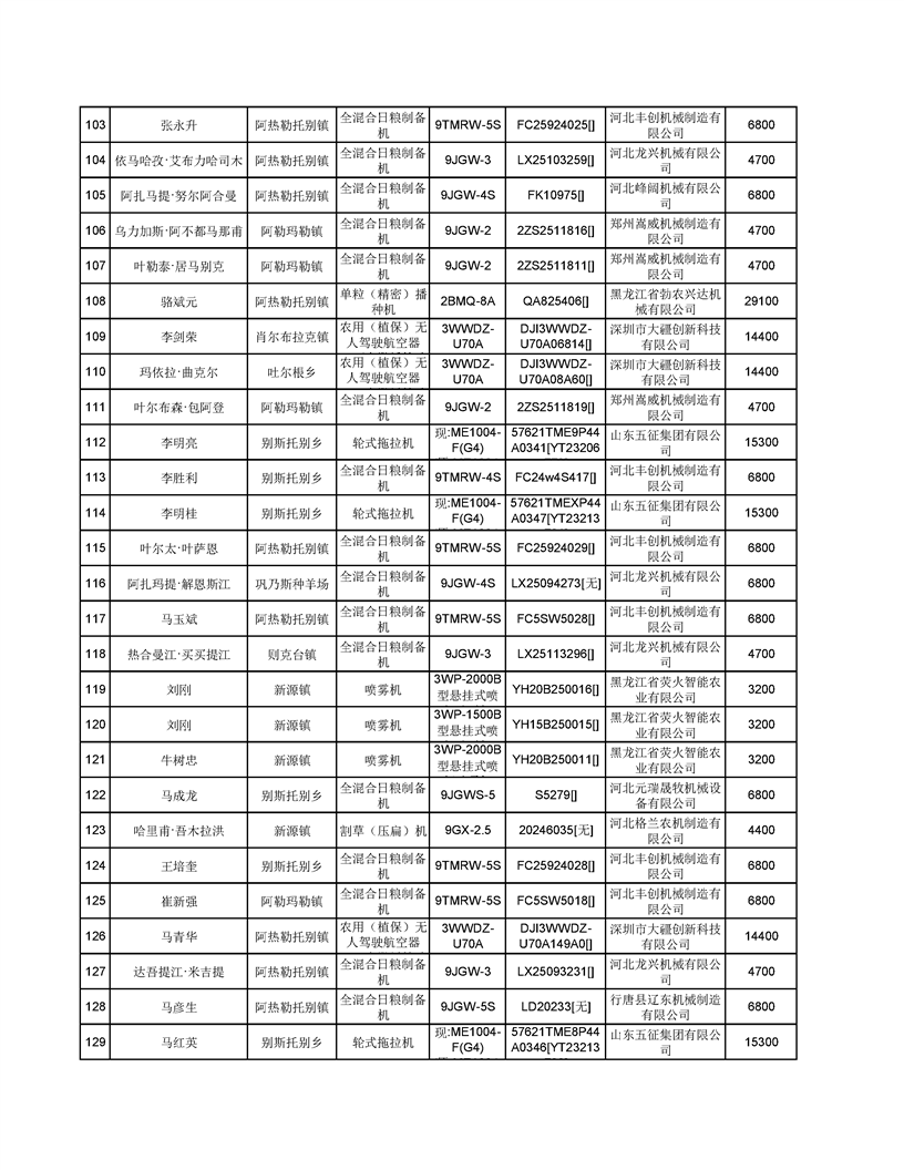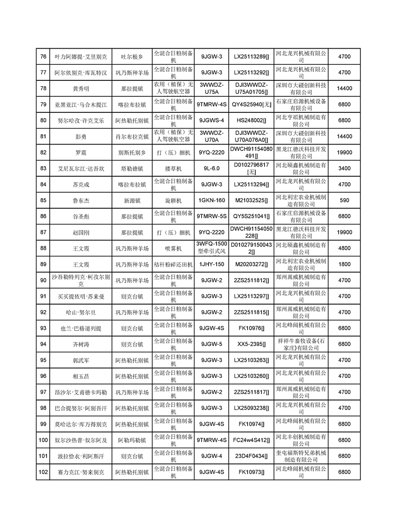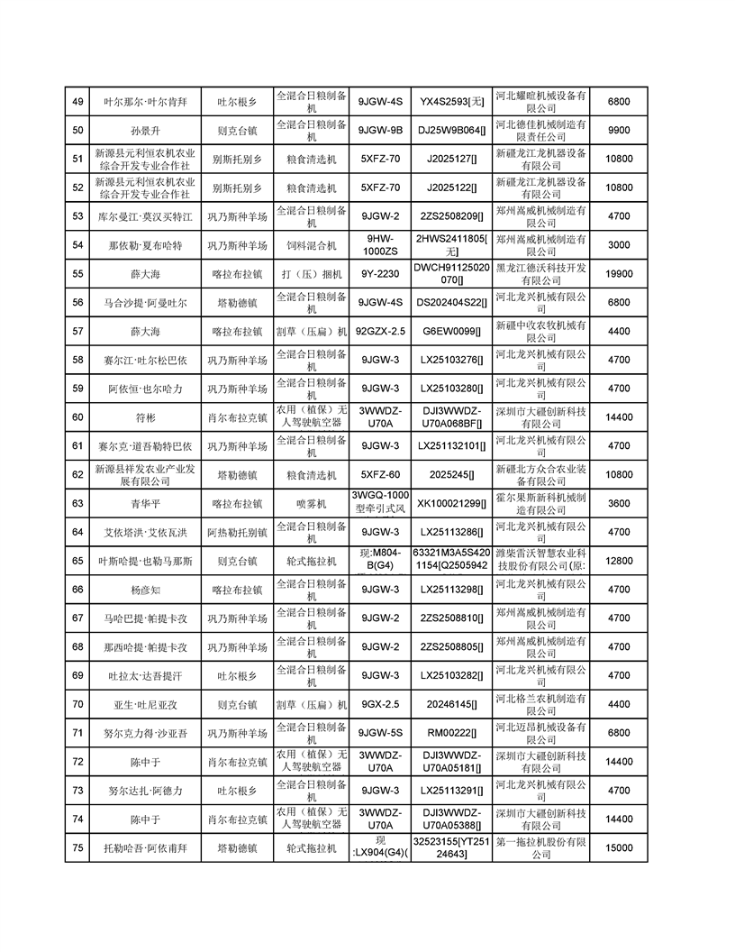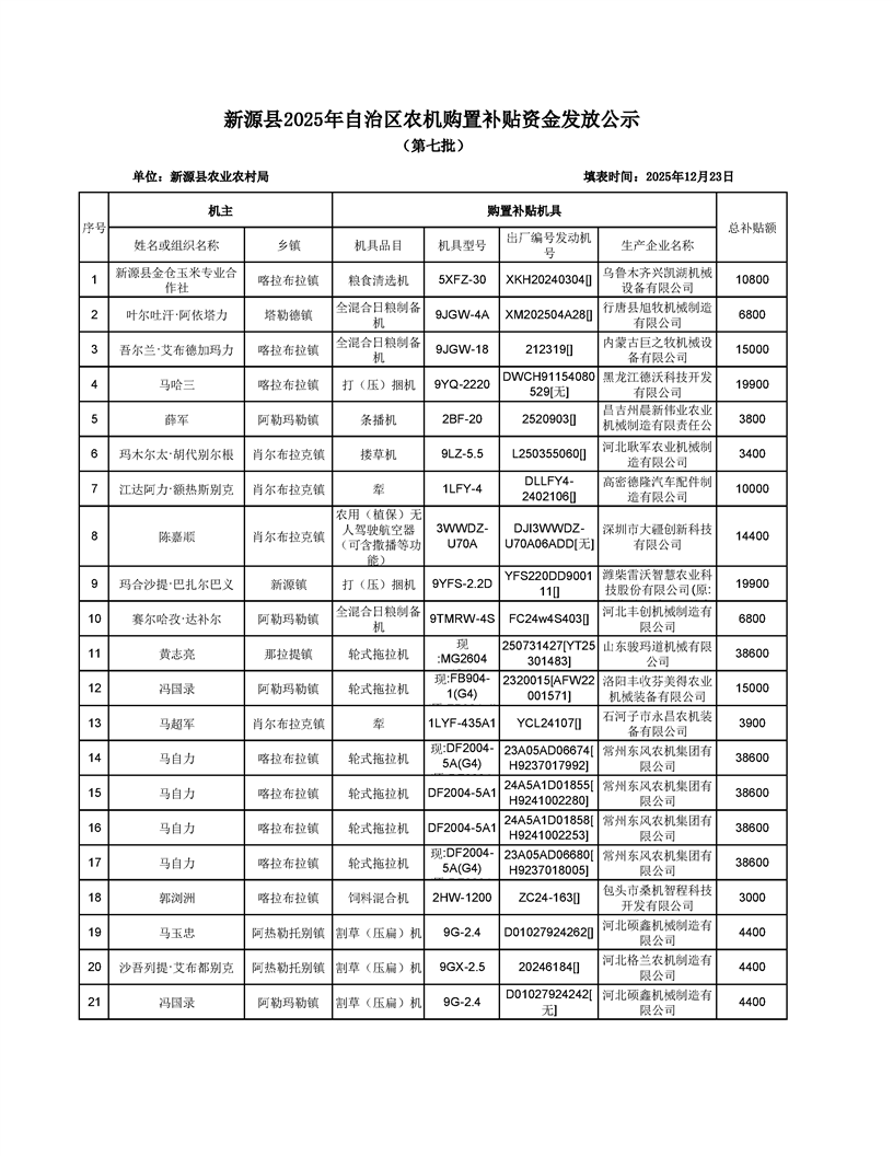 新源县2025年自治区农机购置补贴资金发放公示(第七批)