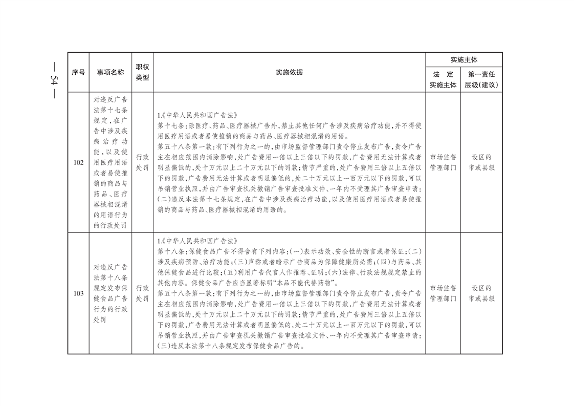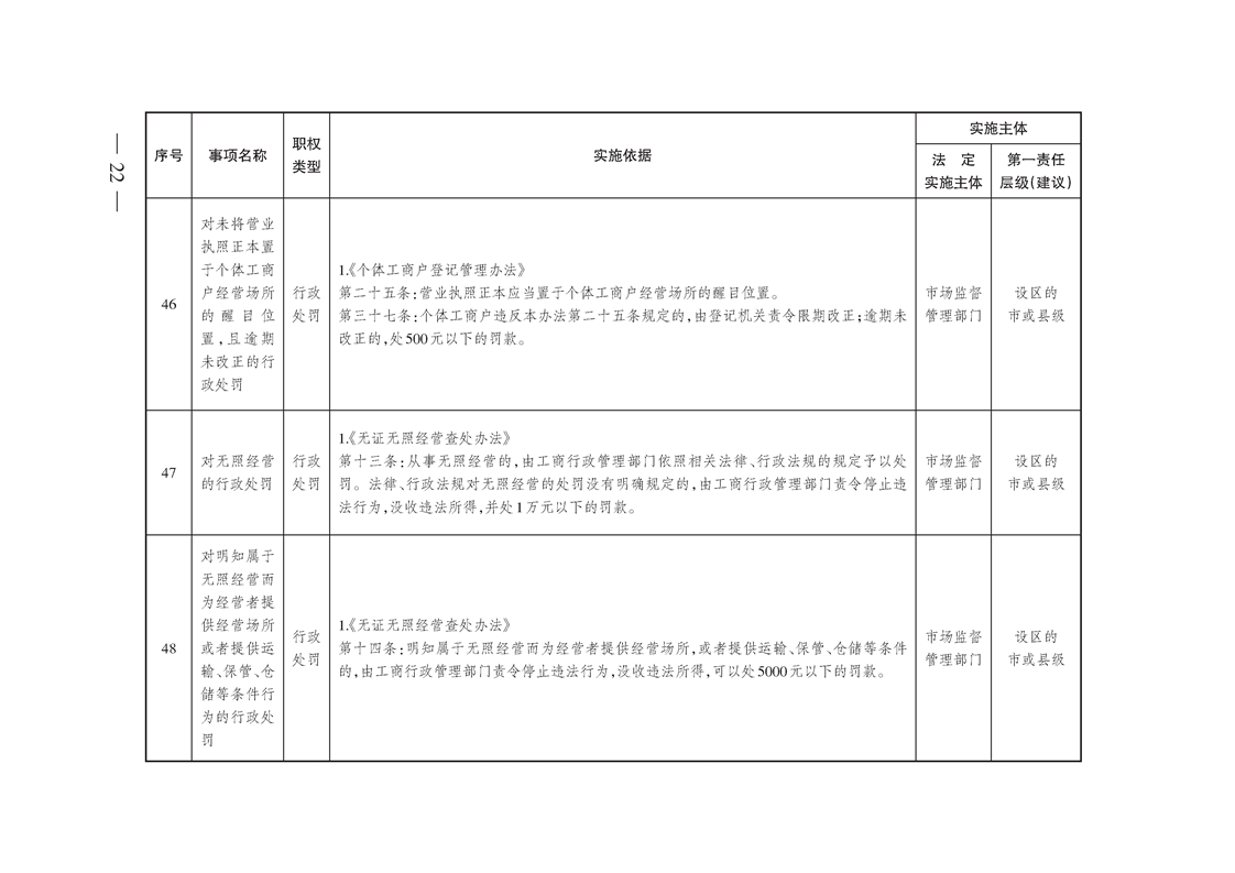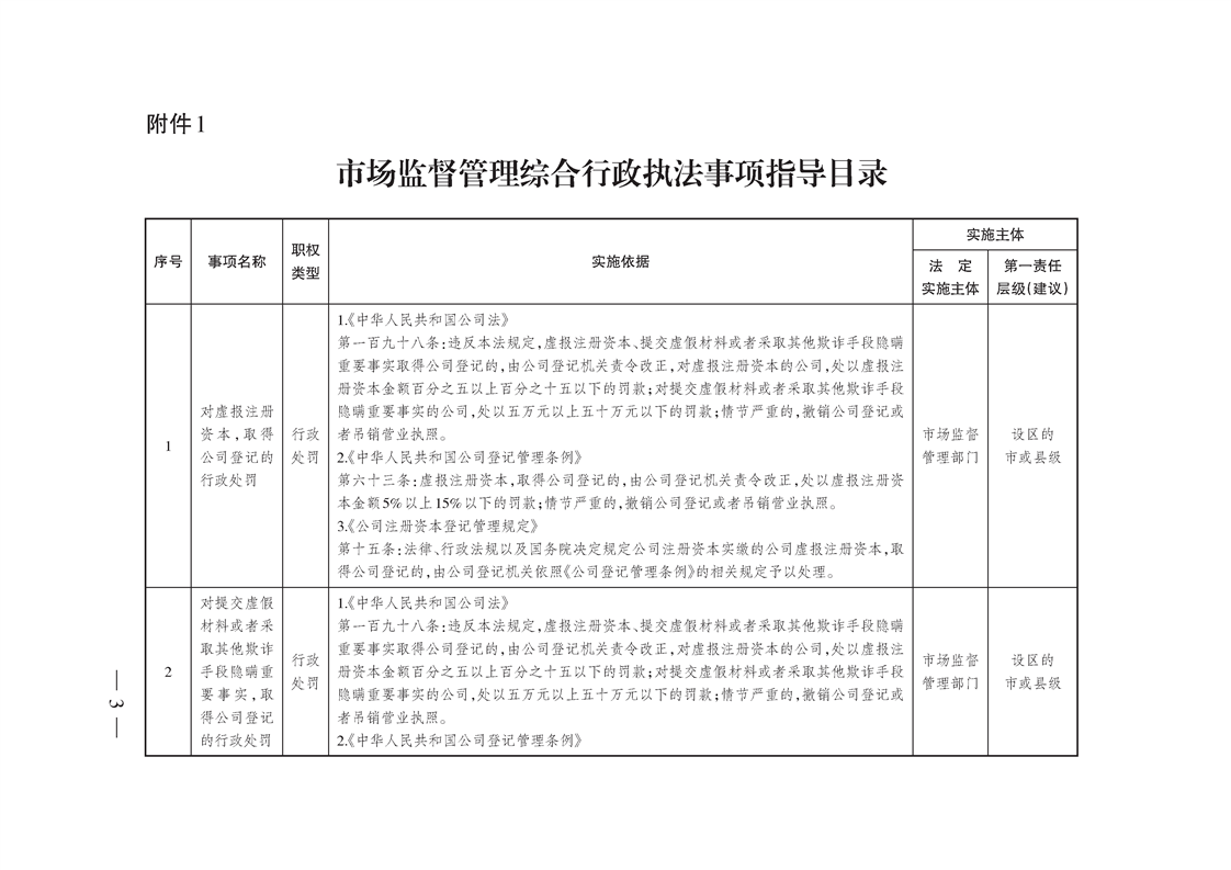 市场监督管理综合行政执法事项指导目录(2022年版)
