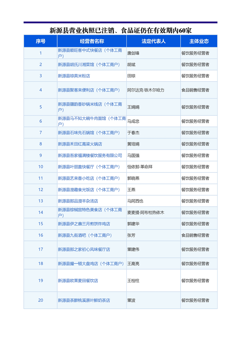 新源县营业执照已注销食品证仍在有效期内60家