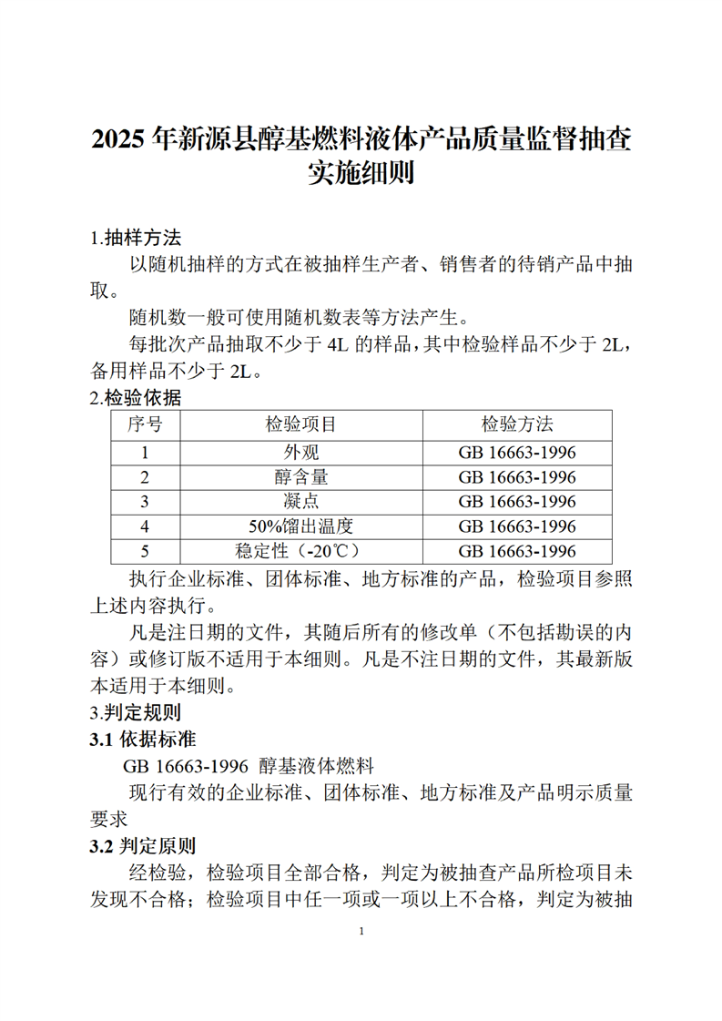2025年新源县醇基燃料液体产品质量监督抽查实施细则
