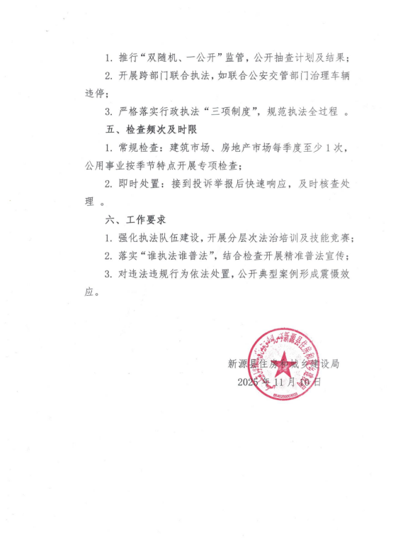 新源县住房和城乡建设局“综合查一次”行政执法检查计划