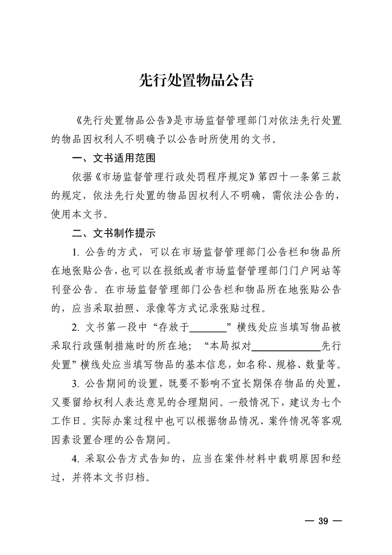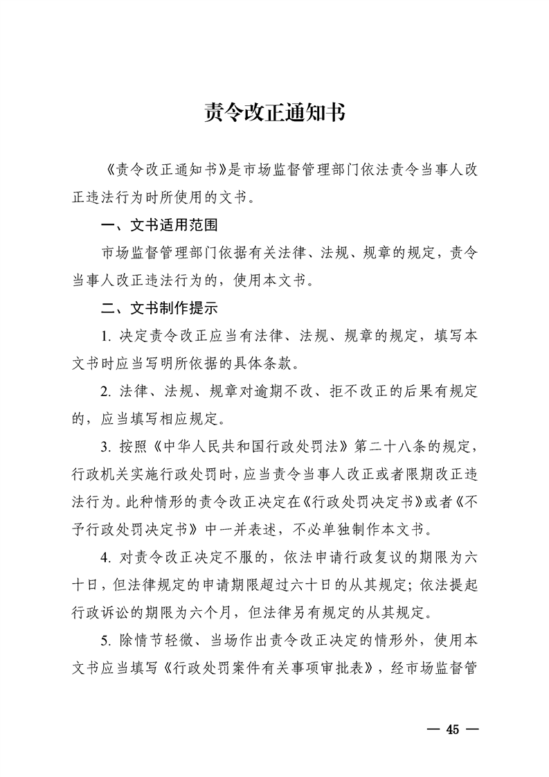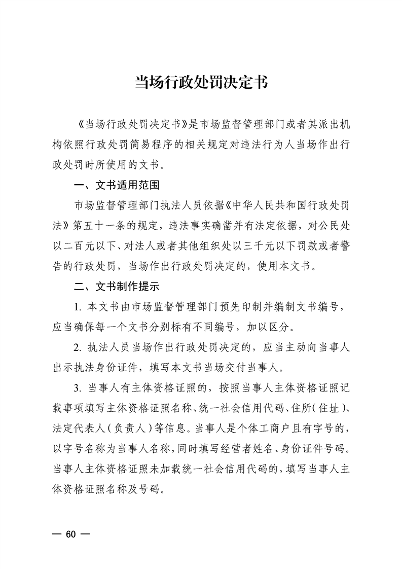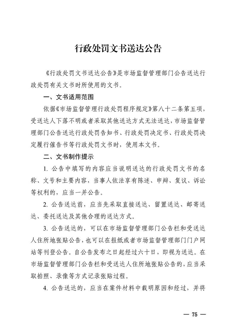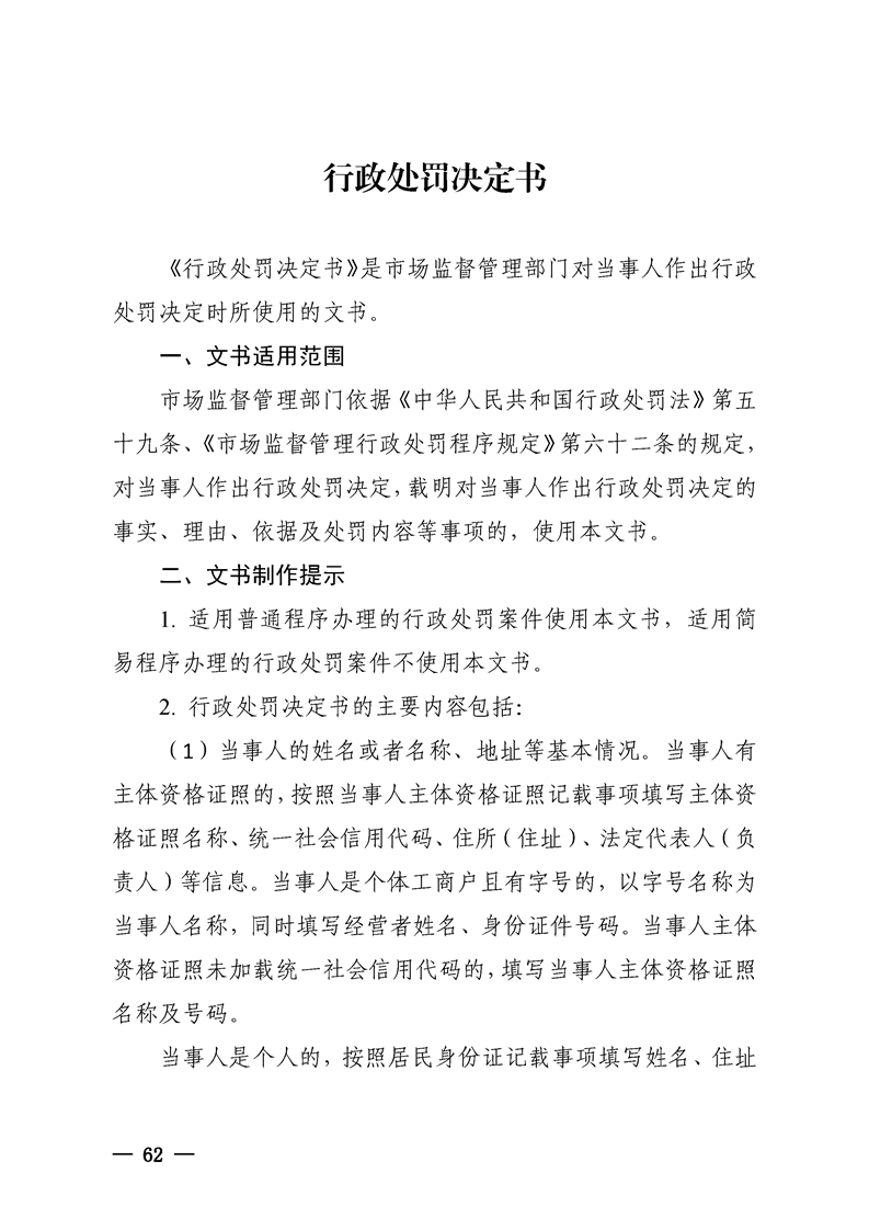 市场监督管理行政处罚文书格式范本及使用指南(2021年修订版)