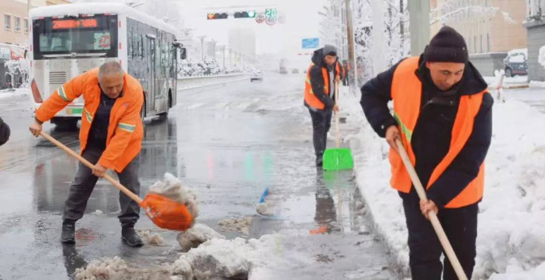 降雪天气下,县城各主次干道积雪明显,环卫工人不畏严寒、坚守岗位,及时清理路面积雪,保障行人与车辆出行安全。下雪天气,执勤交警、环卫工人坚守一线的身影,成为城市里温暖的风景,也赢得了群众的点赞与认可。居民任晓红说:“看到他们及时清扫积雪,我们出门安全又踏实。”