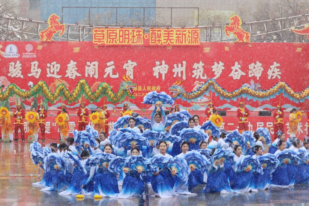 新源融媒讯(记者佳娜提刘宁宁克阿吾沙曹小娟王豪堃邵江涛报道)元宵佳节万象新,社火欢歌庆团圆。2026年3月3日(农历正月十五),新源县2026“雪恋那拉提”冰雪文化旅游系列活动“海杰贸易杯”第二十九届民间艺术社火表演热闹启幕。威风锣鼓震彻街巷,舞龙舞狮腾跃翻飞,秧歌高跷、民俗方阵轮番登场,各族群众欢聚一堂,在欢歌笑语中闹元宵、话团圆,处处洋溢着欢乐祥和、团结奋进的节日氛围。