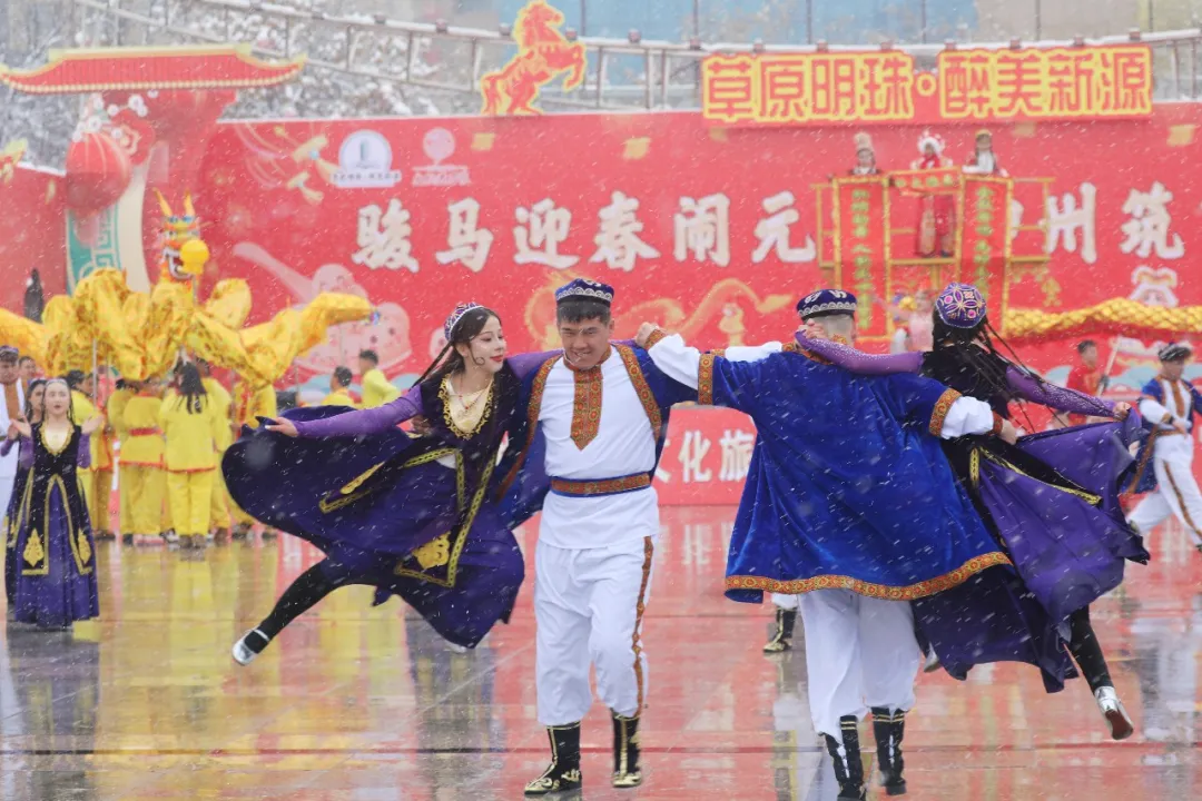 当天上午11:30,在新源县人民广场主会场内,来自全县各乡镇的表演队伍精神抖擞、依次登场,锣鼓铿锵、龙狮腾跃,活动现场人头攒动、欢声不断。