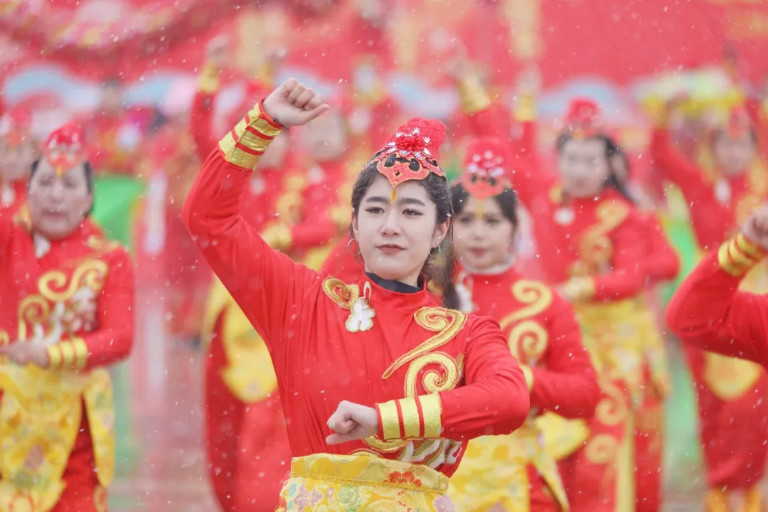 展演现场亮点纷呈。威风锣鼓气势磅礴,鼓点铿锵有力,敲出了新春的昂扬斗志;舞龙舞狮灵动矫健,彩龙腾飞、瑞狮欢跃,尽显喜庆祥和;秧歌队伍身着艳丽盛装,彩扇翻飞、舞步轻盈,将传统秧歌与民族歌舞巧妙融合,韵味悠长;高跷、旱船等民俗节目诙谐有趣,演员们扮相生动、表演传神,与现场观众热情互动,引得阵阵喝彩声、欢呼声不绝于耳。各支队伍精神饱满、技艺精湛,将浓浓的年味、团圆的喜悦和新春的祝福,传递给现场每一位观众,勾勒出各族群众欢聚一堂、共庆佳节的美好画卷。