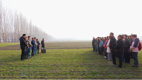 培训现场,绿油油的冬小麦正处于返青生长关键期。此次培训摒弃传统室内授课模式,聚焦田间实操,专家们结合伊犁河谷冬小麦苗情实际,围绕春季水肥管理、病虫草害绿色防控等核心内容,从水肥运筹节点、施肥量把控等细节入手,手把手指导参训人员辨别苗情、科学追肥,并针对弱苗、壮苗提出差异化管理建议,同时讲解病虫害识别、绿色防控技术及农药包装废弃物回收政策,用接地气的语言拆解技术要点,确保大家听得懂、学得会、用得上。