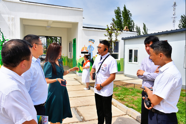 马思远在向调研人员介绍喀拉苏医疗卫生中心