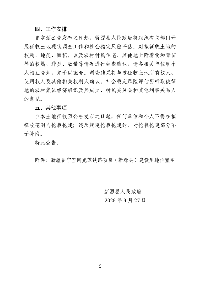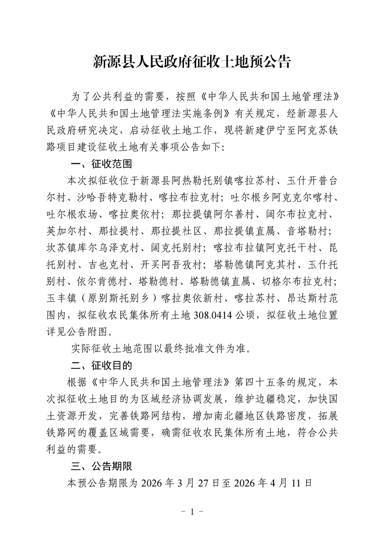 新源县人民政府征收土地预公告