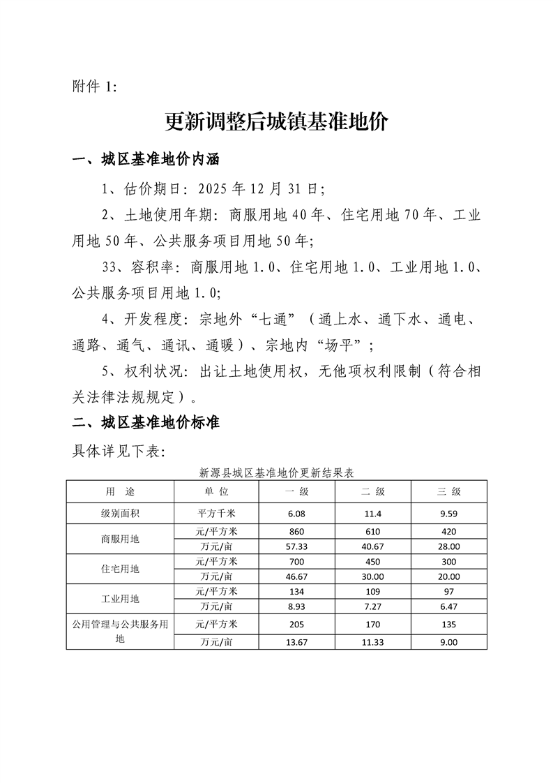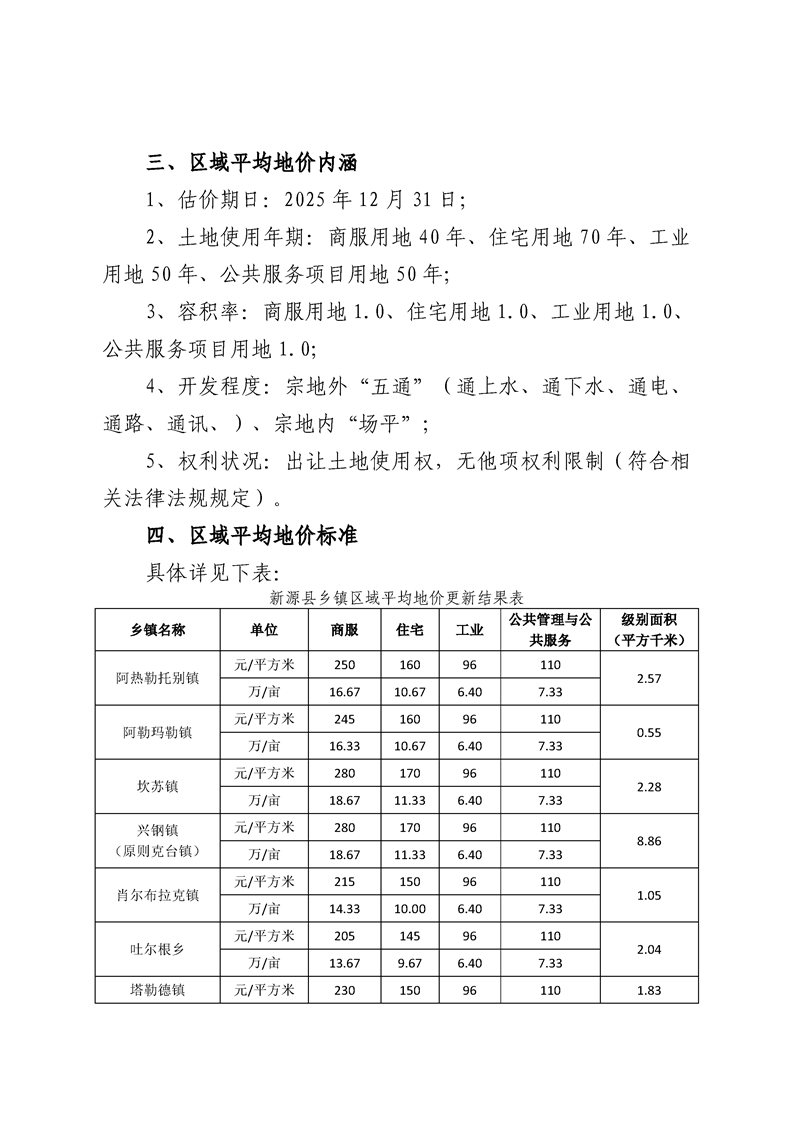 关于公布实施新源县城镇土地基准地价更新成果的公告