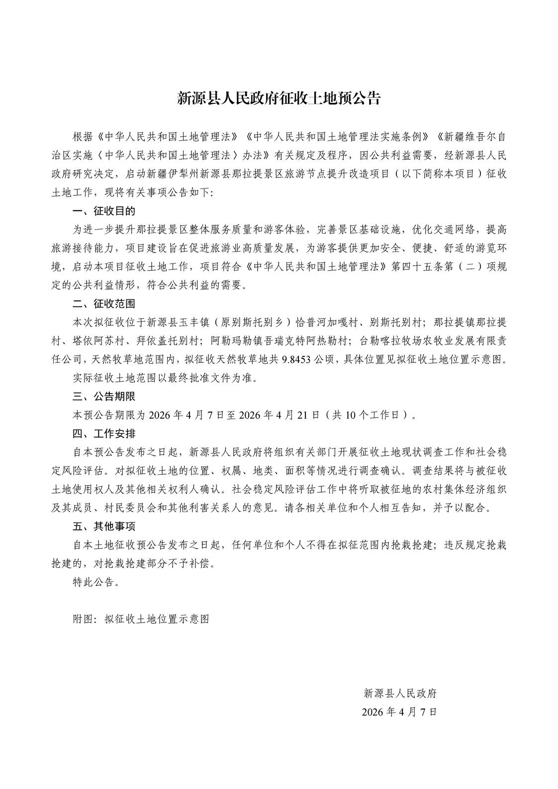 新源县人民政府征收土地预公告