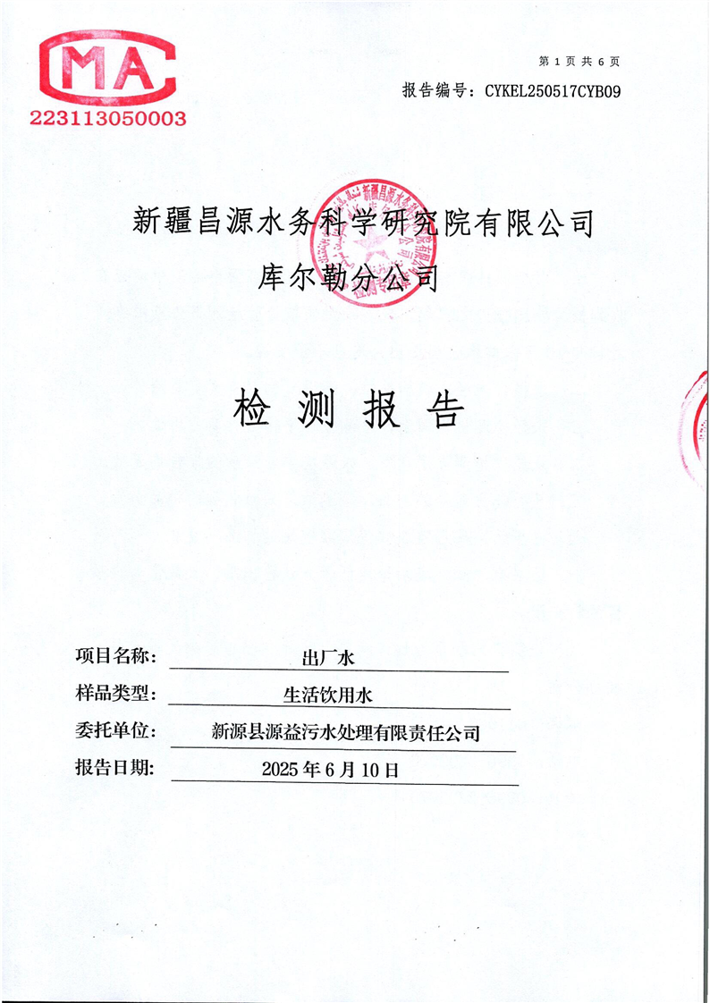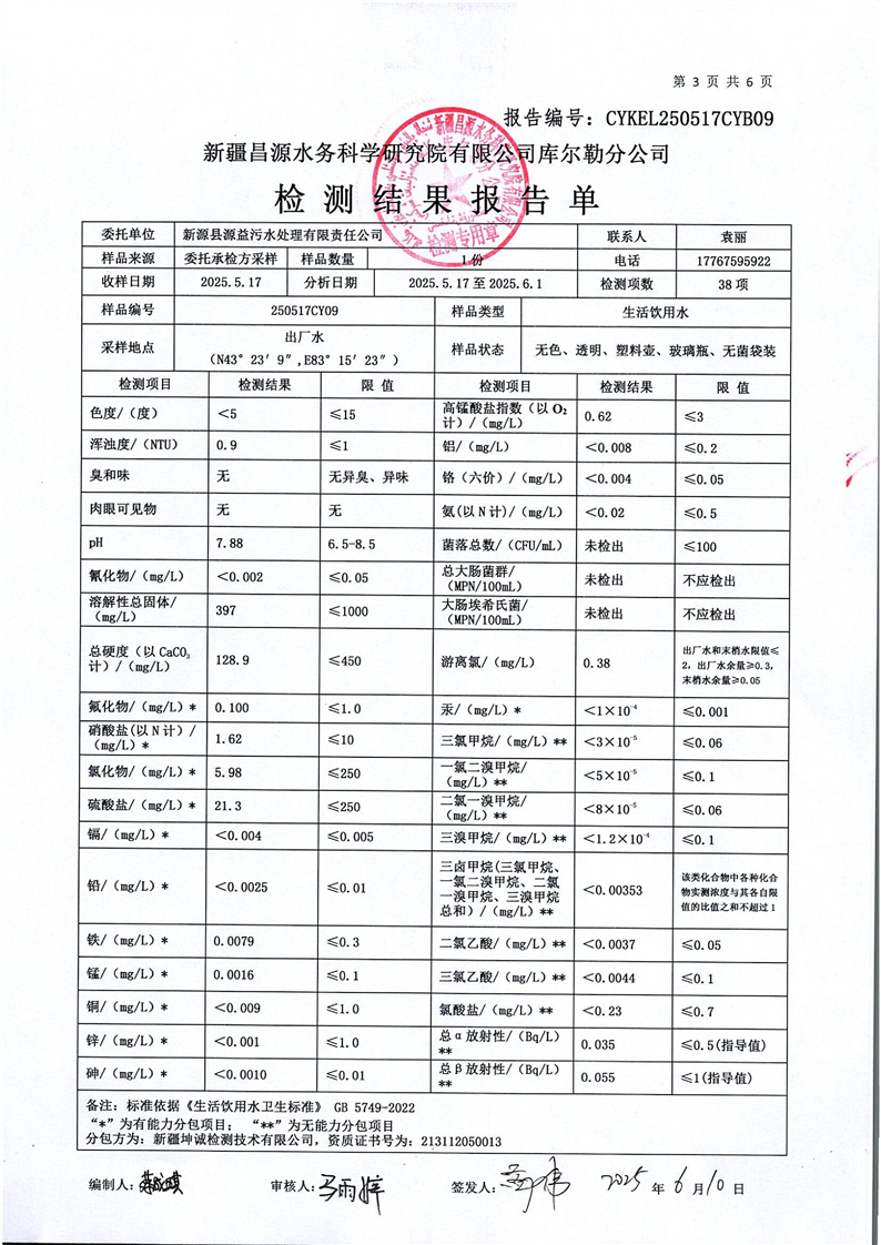 2025年5月水质检测报告