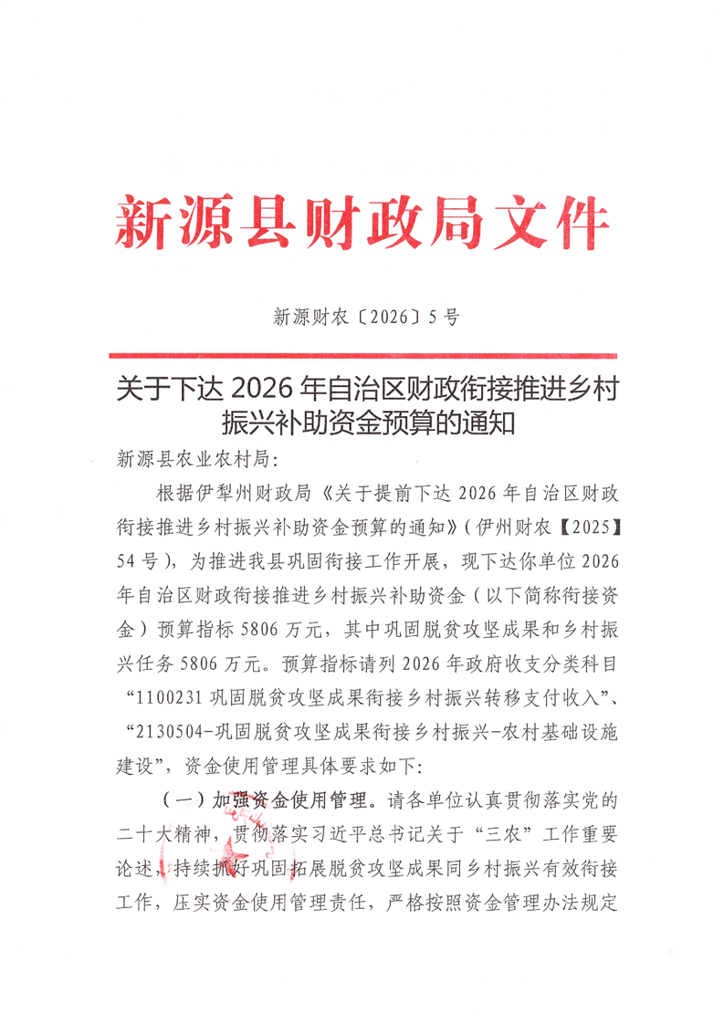 • 文号: 新源财农【2026】5号