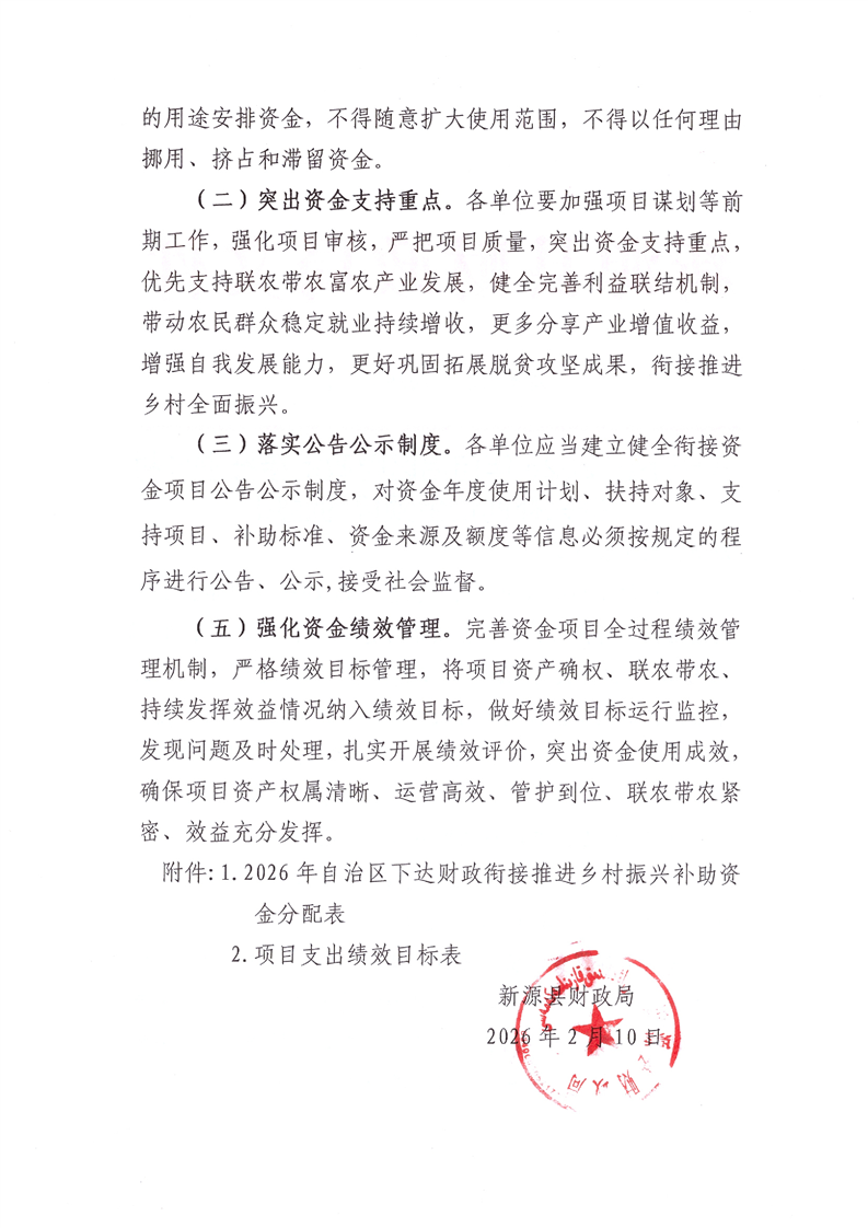 关于下达2026年自治区财政衔接推进乡村振兴补助资金预算的通知